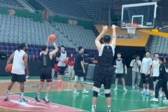 咪咕前方,賽前投籃訓練,可以看出趙繼偉右手有明顯傷勢。