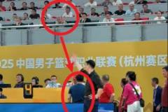 比賽第四節,廣廈老板樓明沖向技術臺暴怒不滿,并不斷鼓動現場觀眾起哄??磁_上的中國籃協副主席徐濟成一直示意讓他冷靜。現場球迷大喊黑哨。