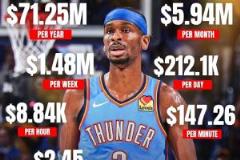 07月05日訊 此前據名記Shams報道,亞歷山大與雷霆簽下一份4年2.85億的頂薪提前續約合同。