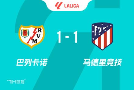 下半場補時3分鐘。最終全場比賽結束,巴列卡諾1-1馬競。